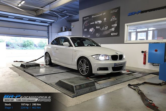 Le Pack Performance contient un échangeur grand volume et une gestion électronique BMW modifiée par rapport au moteur de base 177hp.