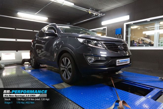 Centre Saint Quentin Fallavier, Sportage 2,0 crdi 4 wd. Résultats banc conformes aux prévisions. Comportement lourdaud initial (1600 kg), complètement transformé. Il devient agréable de monter un peu dans les tours. Entièrement satisfait de l'accueil et du résultat.