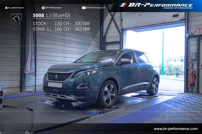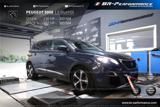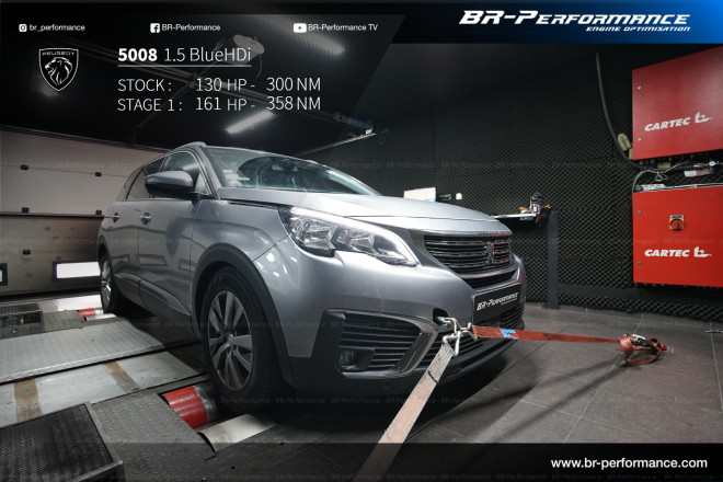 Repro sur un 5008 1.5 HDi 130 HP et 3OOnm. résultat : 160cv et 365nm Le résultat est tout simplement magique. Beaucoup plus de couple à bas régime. relancer la voiture a faible vitesse est très facile , plus obligé de la faire monter dans les tours . Bravo à toute l'equipe de lyon pour leur acceuil et leur enthousiasme . Je recommande vivement Br Performance, c est vraiment des pros .